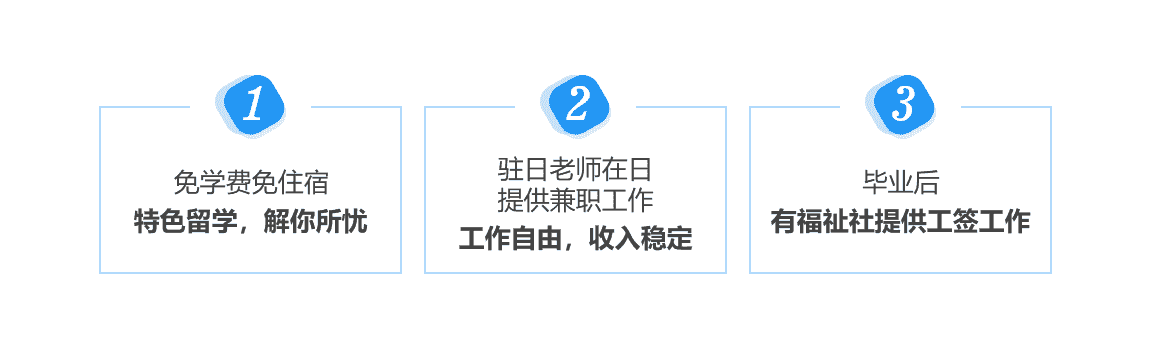 工作穩定:學生抵達日本后第二天便可上崗工作,每天工作8小時。免除家長和學生對半工半讀期間工作不穩定的顧慮。